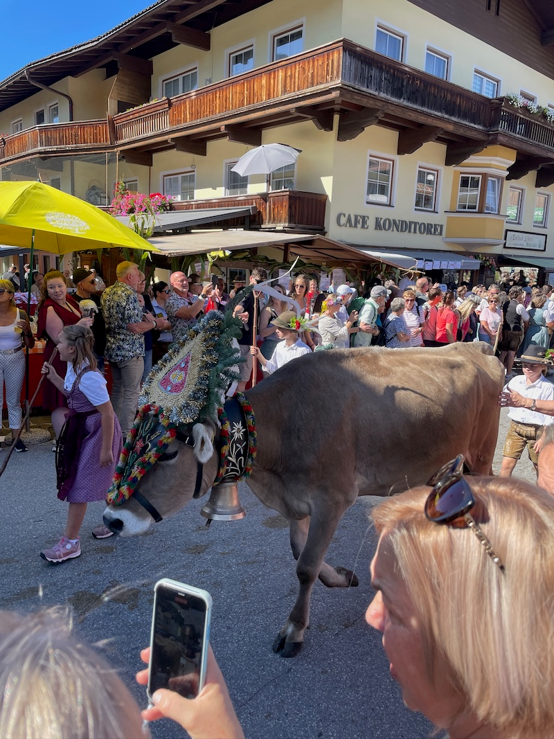 One of the things that makes the Almabtrieb so special is the elaborate decoration of the cows. The lead cows are adorned with huge headdresses made from pine branches, flowers, and ribbons. These decorations aren’t just for show; they are a symbol of thanksgiving. If the summer has passed safely, with no accidents on the mountain, then the cows are honoured with these colourful crowns.